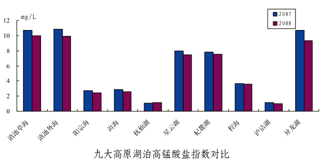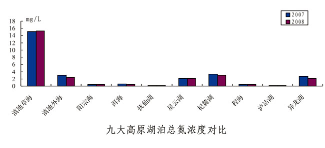 与上年相比,九大高原湖泊中主要水质指标总磷、总氮、高锰酸盐指数年均值大部分呈下降趋势。