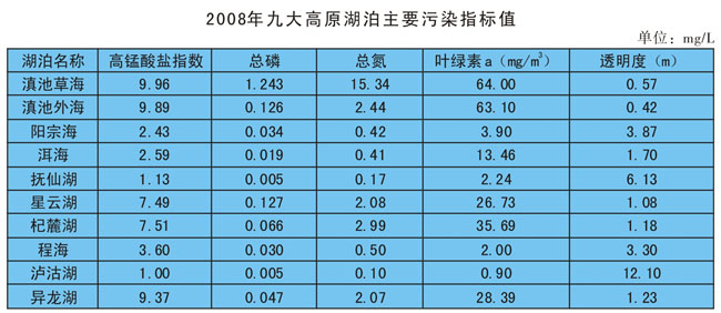 九大高原湖泊水质状况及变化