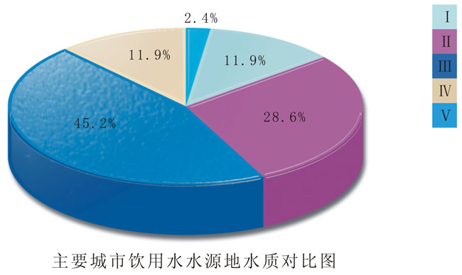 与上年相比,基岩水水质状况变化不大,较好级比例略有下降,良好级比例略有上升。其中,优良级占23.53﹪,良好级占42.35﹪,较好级占4.71﹪,较差级占23.53﹪,极差级占5.88﹪。主要污染指标有pH值、铁、锰、氨氮、亚硝酸盐、化学耗氧量、总硬度、细菌总数、总大肠菌群等。