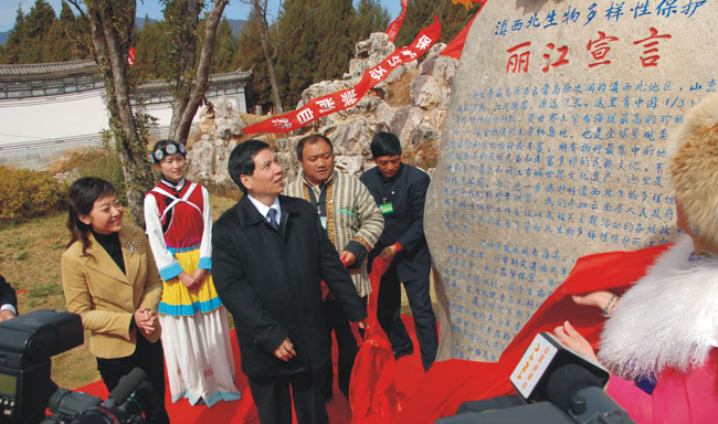 与滇西北生物多样性保护工作会议同步举行了“魅力三江?七彩云南”滇西北生物多样性保护大型主题活动,参加活动的社会各界人士共同发表《滇西北生物多样性保护丽江宣言》。